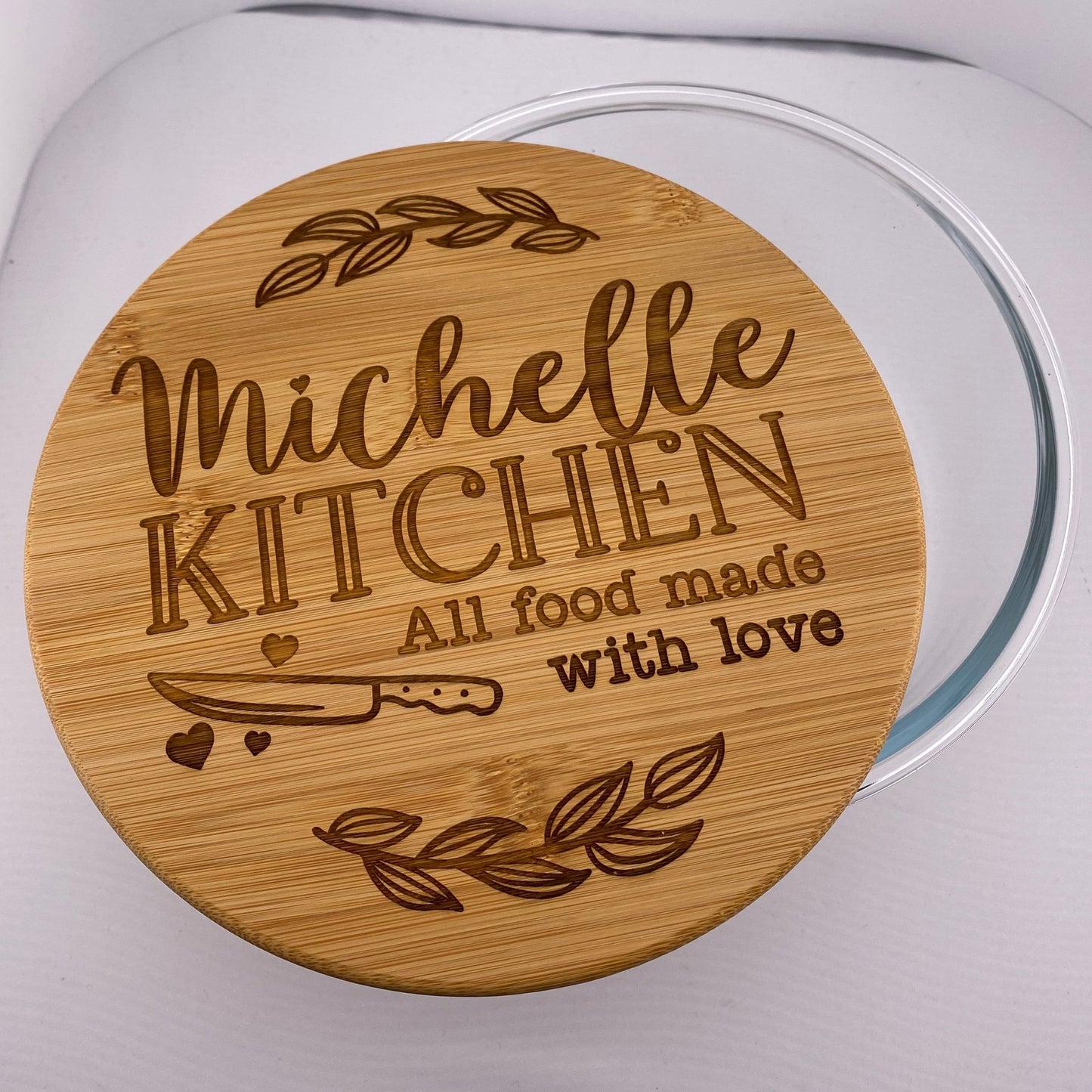 Personalized 44oz Round Glass Container with Bamboo Lid